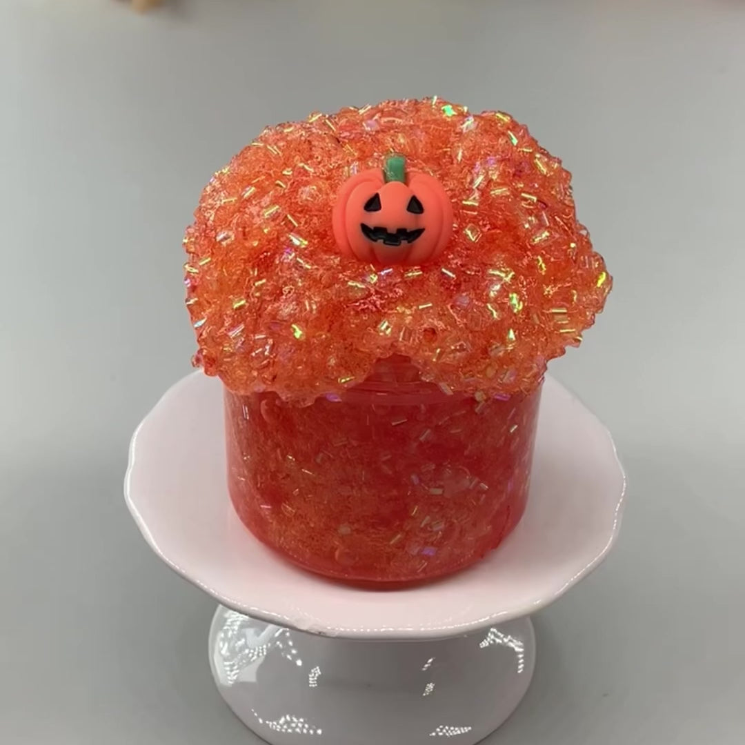 Unser Slime „Pumpkin Glimmer“ bringt herbstlichen Spaß direkt zu dir.🎃✨ Dieser Clear Bingsu Slime ist super crunchy und sizzly: perfekt für alle, die laute Sounds und ein intensives Spielgefühl lieben. Beim Kneten kann er stark inflaten und wird dadurch besonders voluminös. Abgerundet wird der Look durch einen niedlichen Kürbis-Charm, während der fruchtige Orangenduft die Herbststimmung komplett macht.