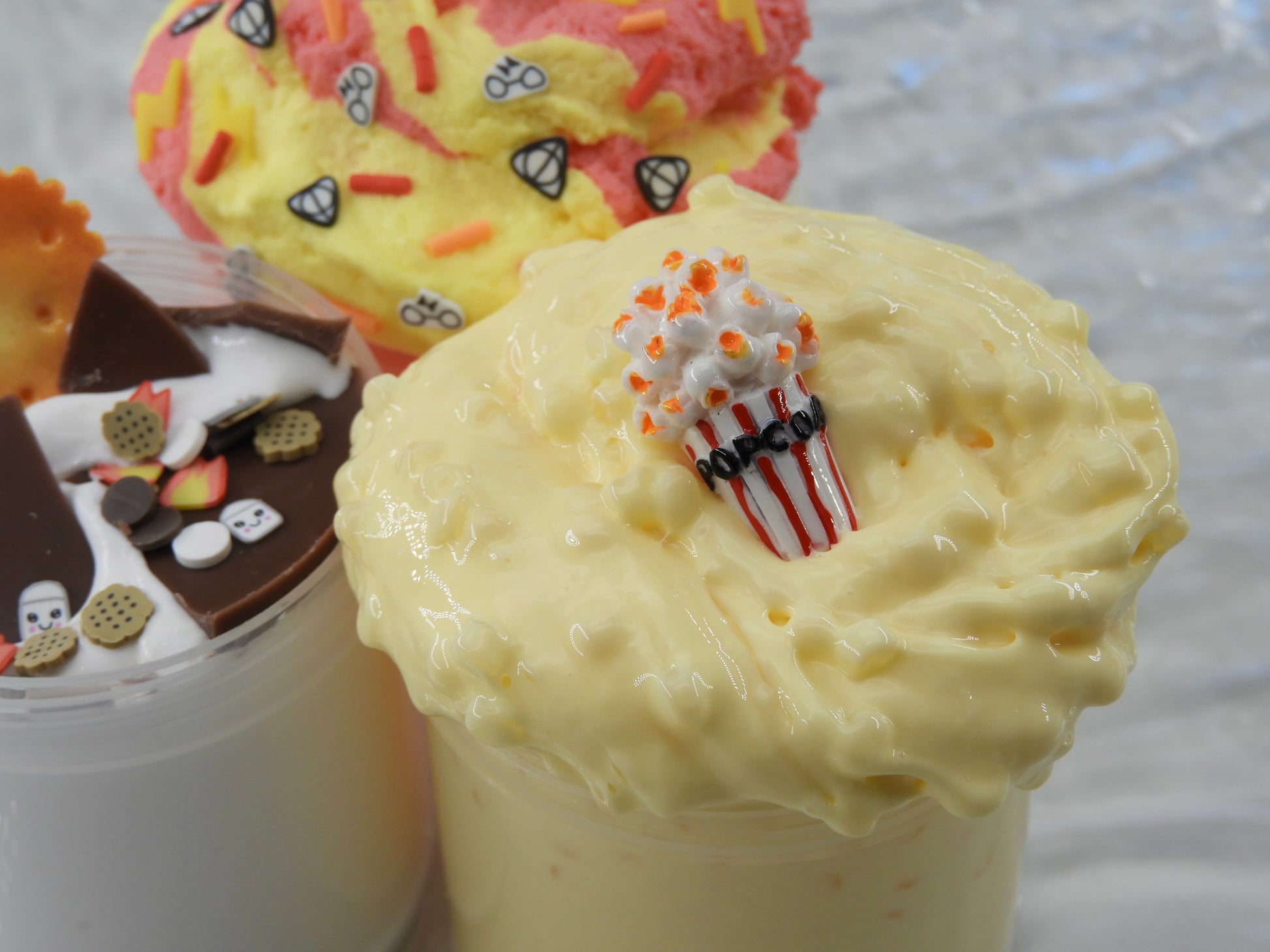 🍿 Movie Night Popcorn: Slime mit Popcorn-Optik, crunchy und voller Bubblepops, duftet wie frisch gemachtes Vanille-Popcorn.
