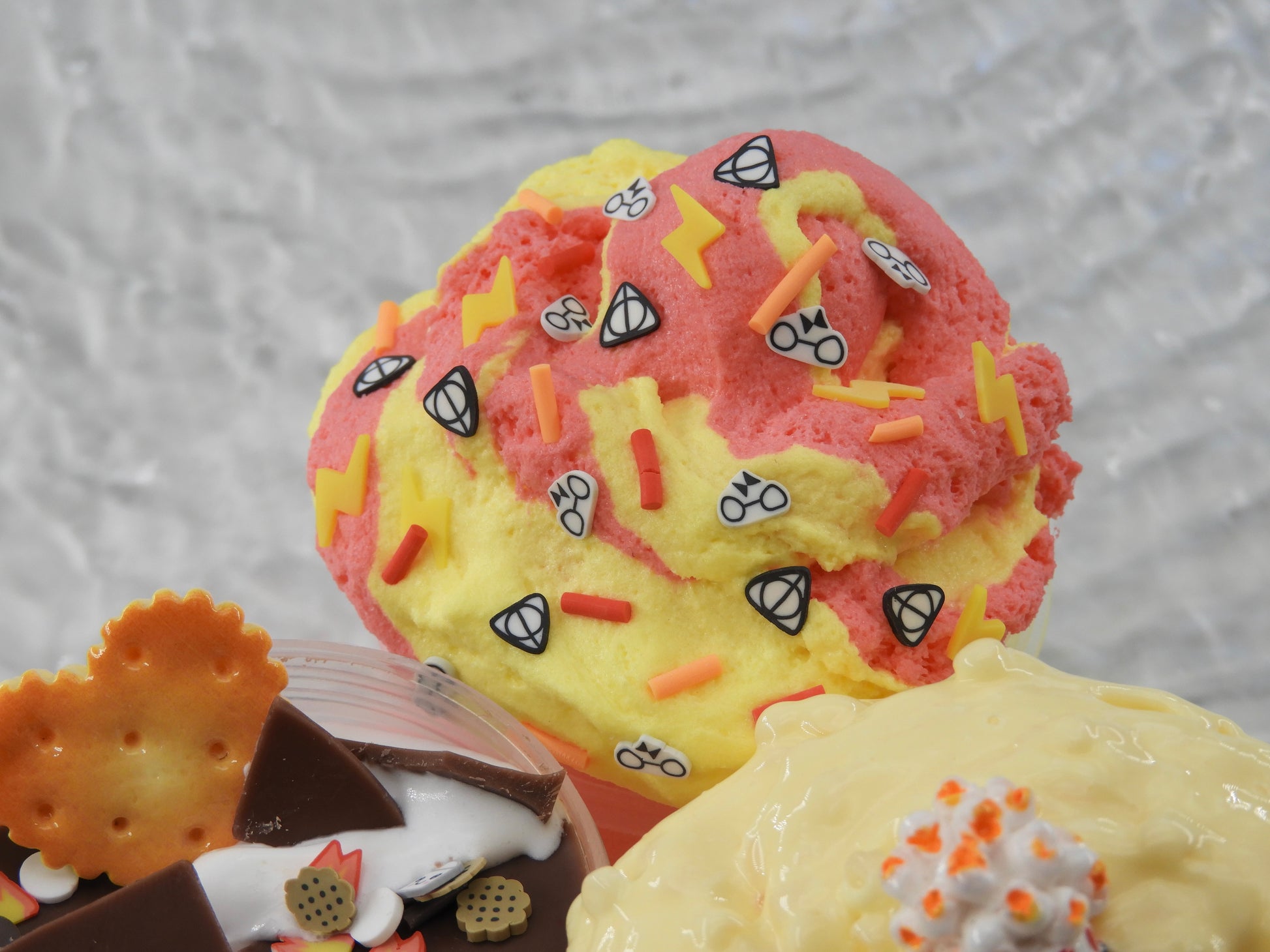 🪄 Gryffindor: Halb roter, halb gelber Cloud Cream Slime, verziert mit Harry Potter Sprinkles, super weich und cremig, mit frischem Zitronenduft.