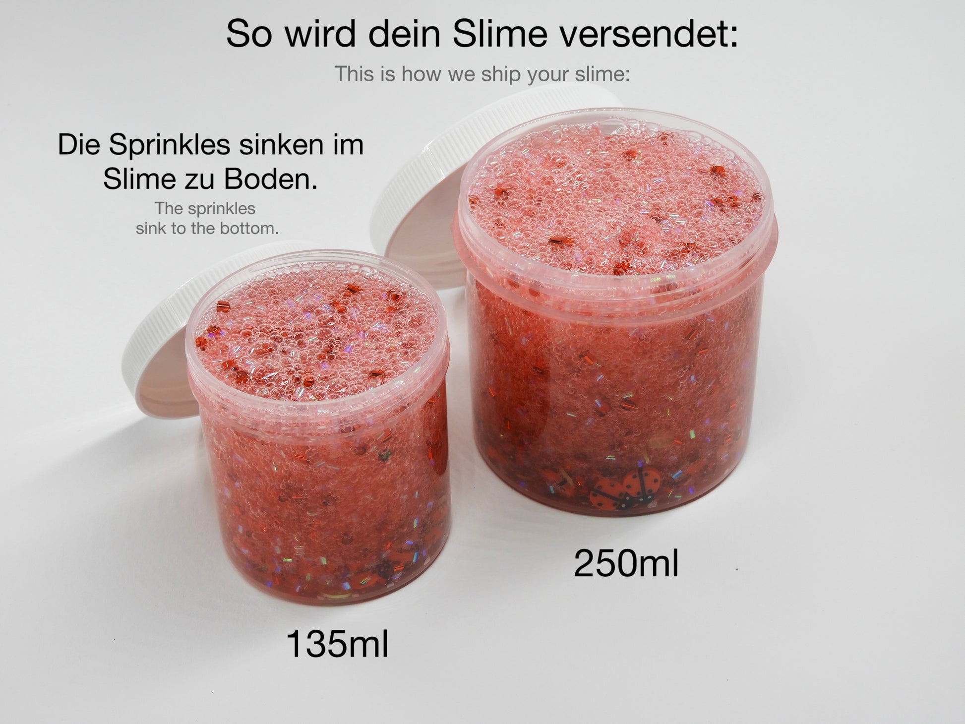 🐞 Ladybug Sparkle: Super crunchy Bingsu Slime mit schimmernden Beads, Marienkäfer- und Blätter-Sprinkles, frisch nach Aloe Vera duftend.
