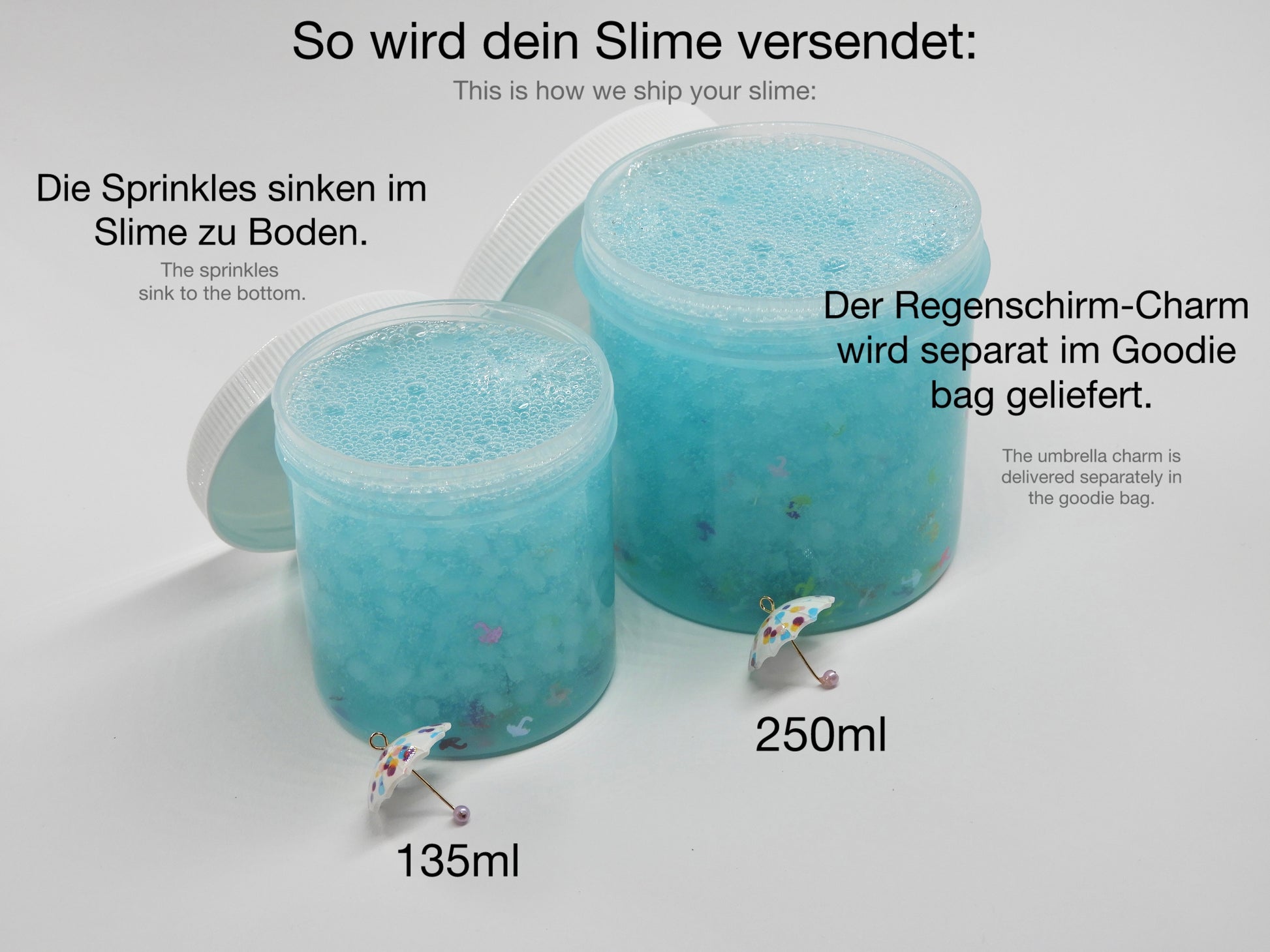 ☔ Dancing in the Rain: Clear Slushee Slime mit vielen Slushee Beads, Regenschirm-Glitzer und -Charm, frisch und blumig duftend.