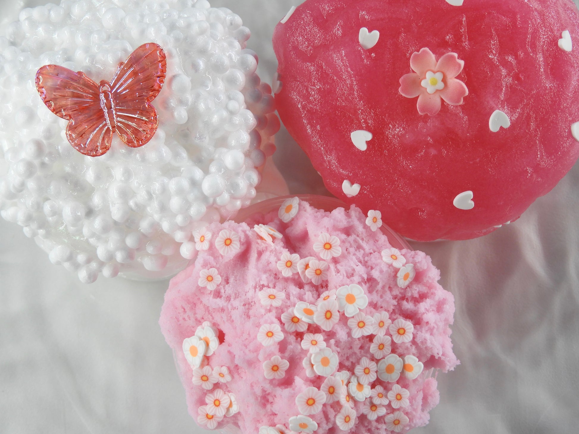 Wer liebt rosa-Töne im Frühling auch so sehr? Dann ist diese Set perfekt! Es enthält drei wunderschöne Frühlings-Slimes: