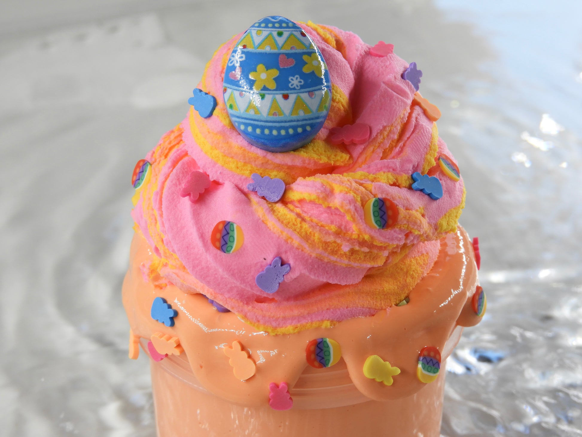 🥤 Easter Milkshake: DIY Clay Slime aus thick & glossy Base und Clay-Topping mit Ostereier-Sprinkles und Charm, beim Mischen entsteht ein weicher Butter Slime, fluffig und inflatbar, Duft nach Himbeere (immer 135ml + Clay Topping)